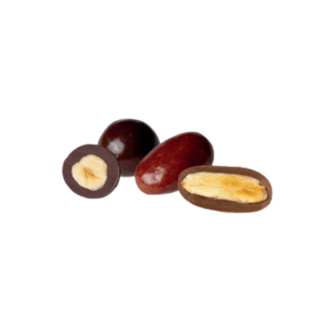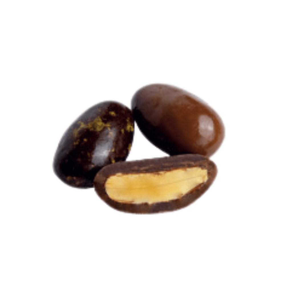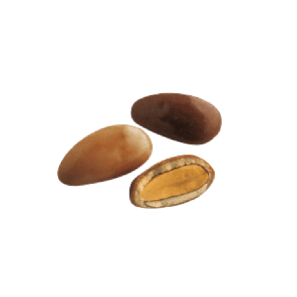 Dragée amande torréfiée à cœur, enrobée de gianduja.