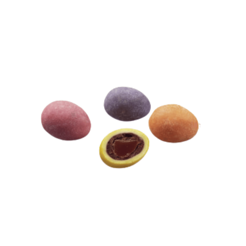 Dragée aromatisée à base de fruits : Fruit de la passion, Framboise, Citron vert,
