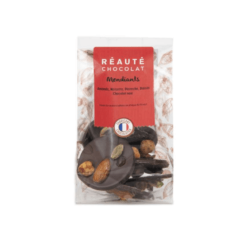 Palet au chocolat noir, amande, noisette, pistache et raisin.