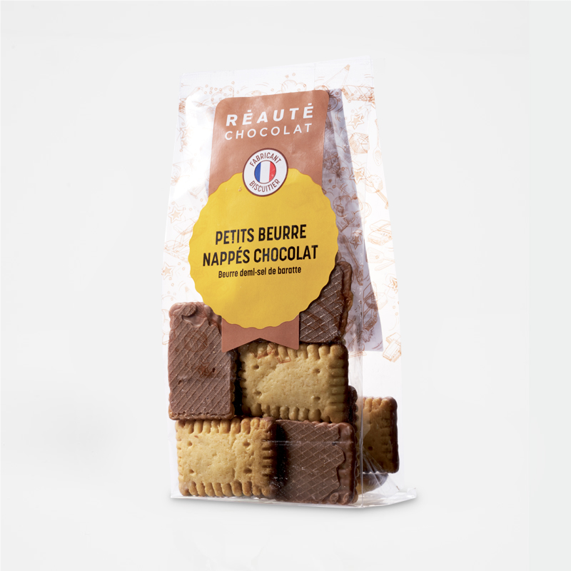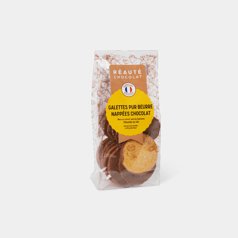 Biscuit sablé au bon goût de beurre et finement enrobé de chocolat au lait.
